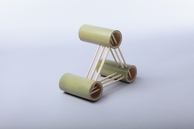 Réalisé dans le cadre de la résidence Hand in Hand au National Taiwan Craft Research and Development Institute (NTCRI), K-libre explore le potentiel du numérique comme outil de fabrication de l’outil lui-même. Ce projet marque une étape importante dans la réflexion de Dimitry sur l’intelligence des systèmes constructifs et sur la manière dont la technologie peut enrichir les gestes artisanaux sans les supplanter.À partir de calibres imprimés en 3D, il conçoit un système modulaire permettant d’assembler avec précision des structures en tourillon, en maîtrisant l’angle et la régularité de l’assemblage. Ce dispositif générique et adaptable devient un prolongement de la main, à la fois guide, matrice et catalyseur de formes.K-libre s’inscrit ainsi dans une démarche où l’outil devient vecteur d’expérimentation, au service d’une pensée constructive libérée des carcans formels. Il prolonge une interrogation plus large sur l’hybridation entre artisanat et innovation technologique, fil rouge du travail de Dimitry.
