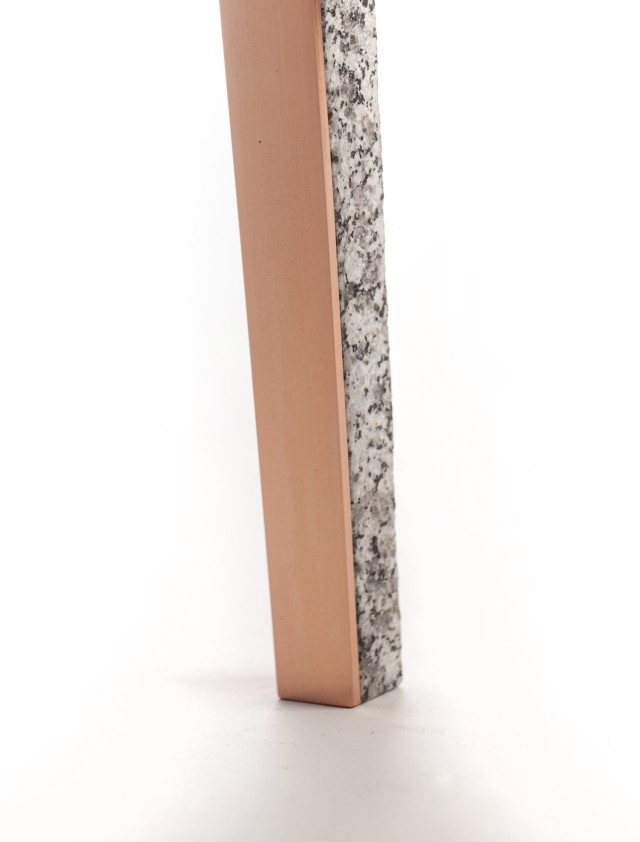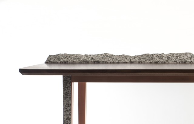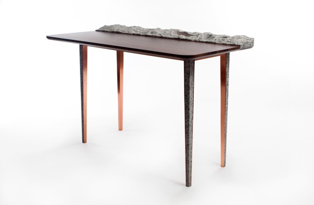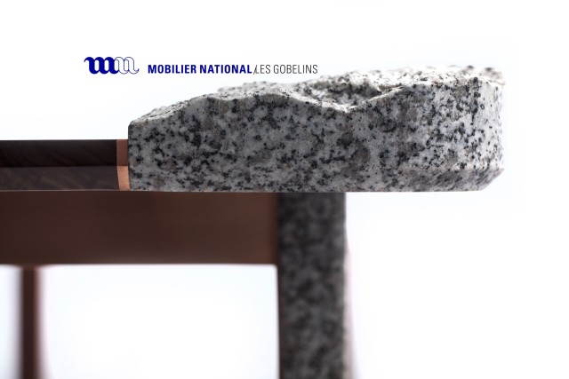 Entré dans les collections du Mobilier National en 2021.Le bureau Sidobre est né d’une volonté commune de valoriser les matières et savoir-faire vernaculaires du Tarn, et plus précisément de la région granitique du Sidobre, territoire singulier au cœur du Massif central. Porté par l’association Granit et Pierres du Sidobre, ce projet a réuni designers et artisans dans une démarche de production locale.Conçu par Dimitry Hlinka en collaboration avec Dominique Planchand, artisan granitier depuis six générations, ce meuble associe trois matériaux emblématiques du territoire : le granit du Sidobre, le noyer et le cuivre. Sa composition est pensée pour mettre en tension masse et légèreté, solidité et finesse.Le piétement en cuivre assure la stabilité de l’ensemble tout en soulignant les lignes du plateau en pierre, dont les reliefs et volumes rappellent les paysages granitiques environnants.