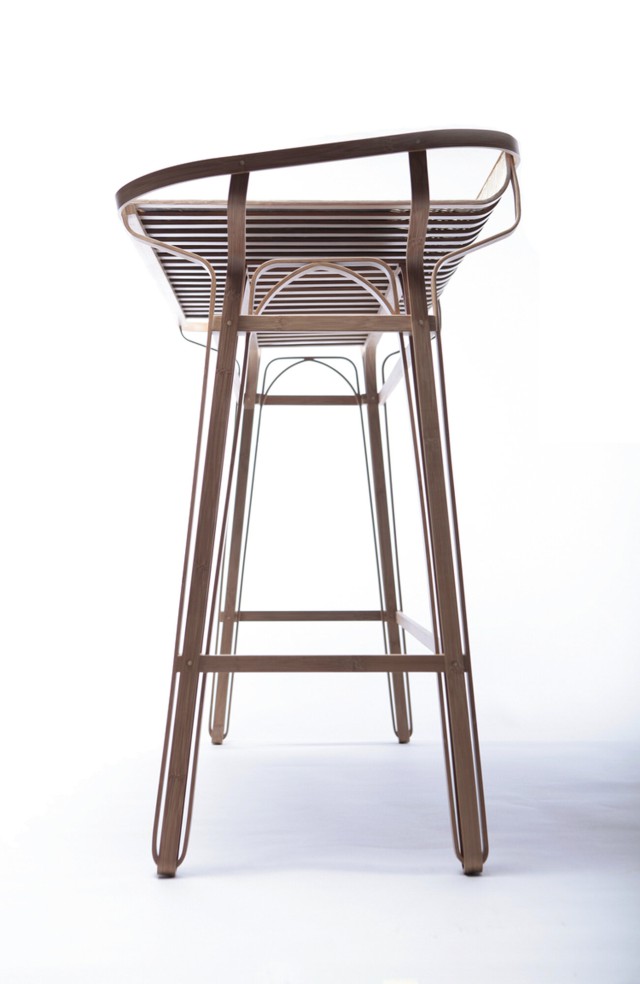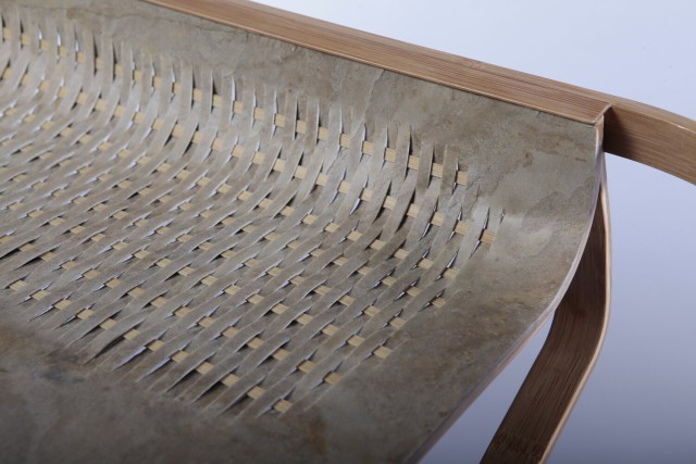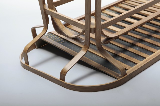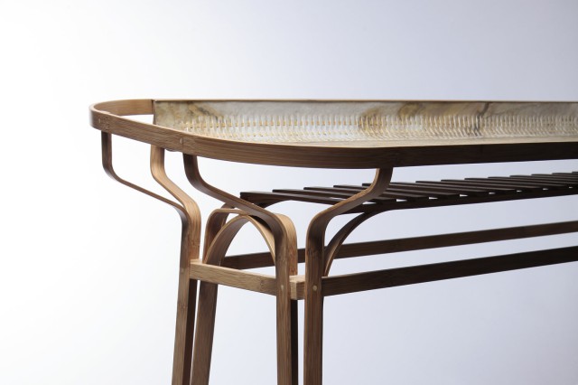 Réalisé dans le cadre de la résidence Hand in Hand au National Taiwan Craft Research and Development Institute (NTCRI), Silhouette est le fruit d’une collaboration avec Lin Jiang-Cheng, maître artisan spécialisé dans le cintrage à chaud de bambou laminé, dans la région de Nantou.Silhouette explore les propriétés mécaniques du bambou, matériau à la fois souple, résistant et porteur d’une dimension culturelle locale forte. À partir de techniques de cintrage maîtrisées localement, Dimitry dessine une gamme de consoles alliant légèreté visuelle et résistance structurelle.Le piètement, composé de deux calibres identiques qui s’emboîtent, crée un principe de construction simple et reproductible. Le plateau, réalisé en feuille de pierre, épouse la courbe du bambou, facilitant le cintrage tout en instaurant un dialogue entre textures minérales et organiques.En intégrant la pierre à cette structure végétale, Silhouette poursuit l’exploration des matières hybrides chère à Dimitry et interroge les rapports entre rigidité et flexibilité, densité et transparence. Ce projet a été récompensé par le Prix du Public du Rado Star Prize lors de la Paris Design Week 2017.